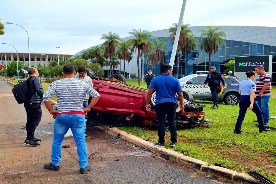 Um carro capotou no Eixo Monumental, na manhã desta terça-feira (14/12), após o motorista se envolver em um acidente com outro veículo, na altura do Centro de Convenções Ulysses Guimarães.