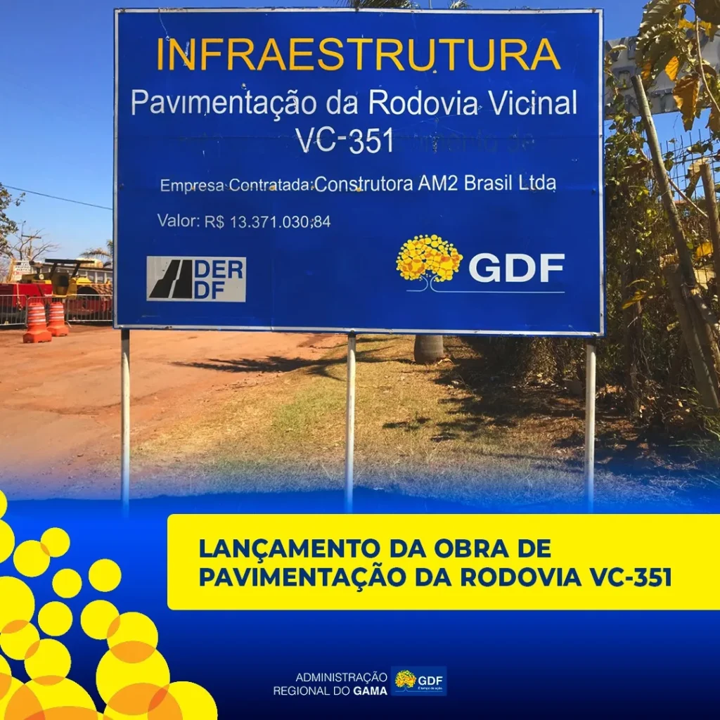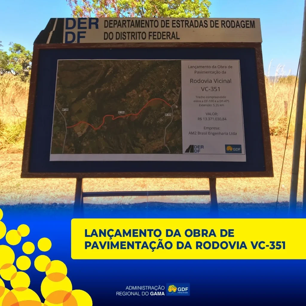 O Governo do Distrito Federal (GDF), por meio do Departamento de Estradas de Rodagem (DER-DF), autorizou o início das obras de pavimentação da VC-351, localizada no Gama. A ordem de serviço foi assinada neste sábado (27) pelo governador Ibaneis Rocha em evento na região.