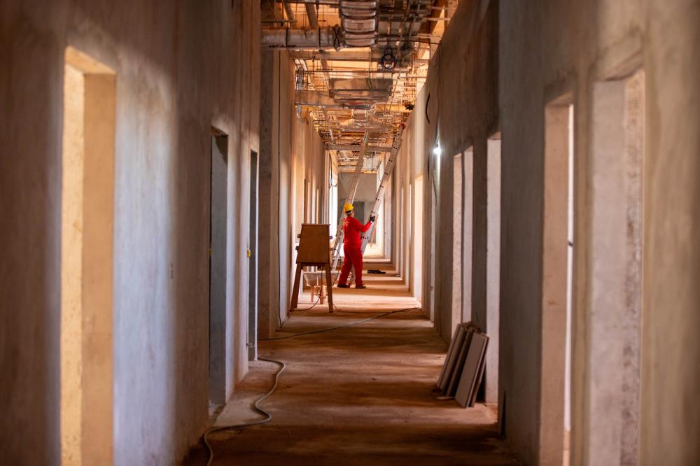 As obras do novo hospital de Novo Gama avançam conforme o cronograma e já entraram em uma nova etapa de execução. O prédio está recebendo a instalação de portas e janelas, além de revestimentos e divisórias de drywall, o que garante mais modernidade e funcionalidade aos ambientes da unidade.