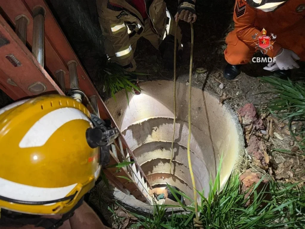 “Os militares realizaram a estabilização de uma escada no interior do poço e, com técnicas de resgate vertical e monitoramento constante, efetuaram a retirada segura da vítima, uma mulher, que se encontrava consciente e orientada”, diz a nota do CBMDF.