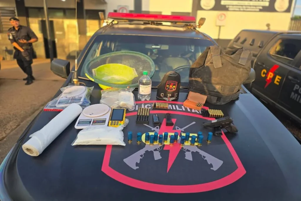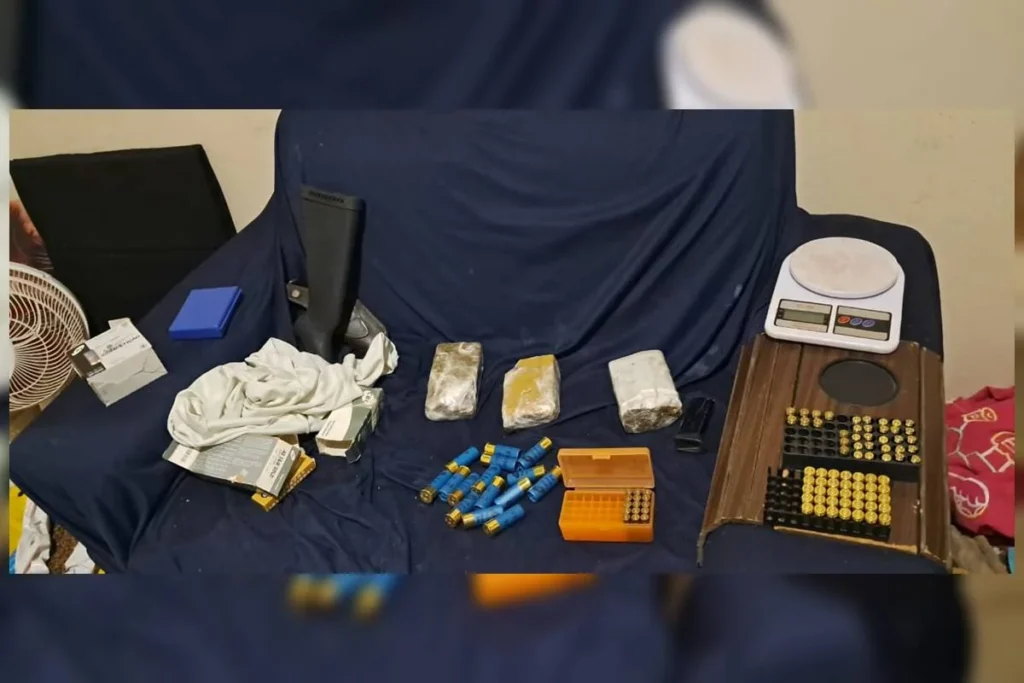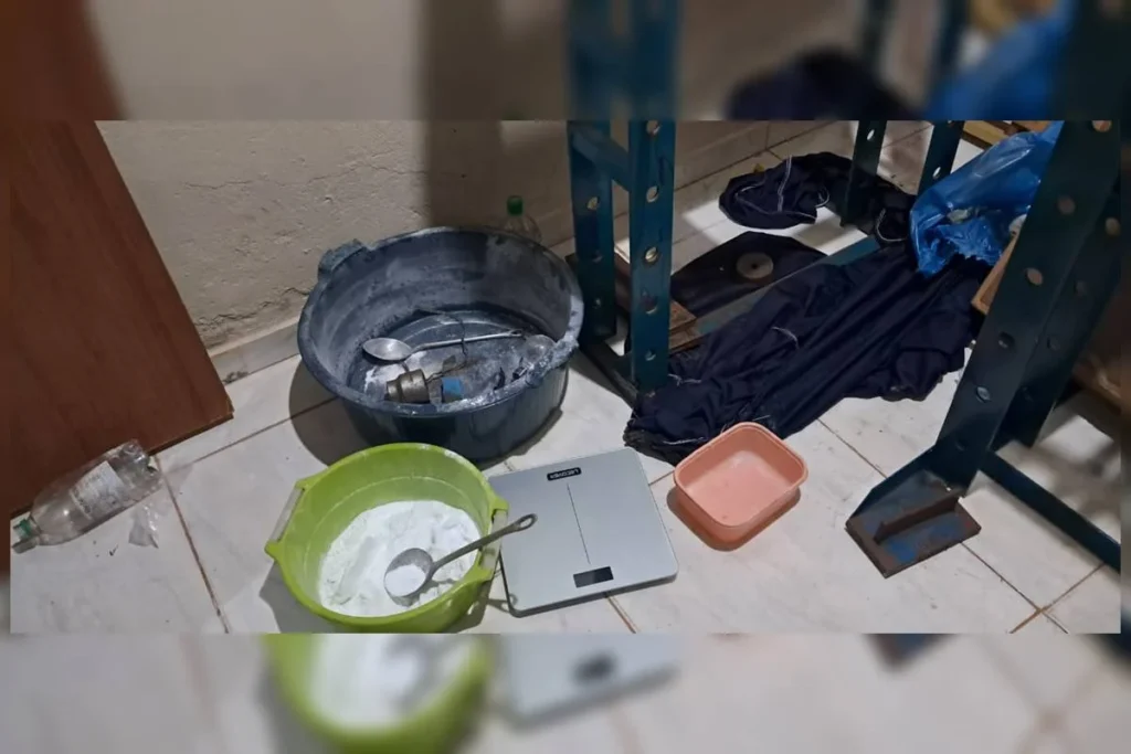 No laboratório, localizado na Vendinha, a equipe encontrou um arsenal do crime, incluindo munições, equipamentos balísticos e maquinário para refino e produção de drogas.