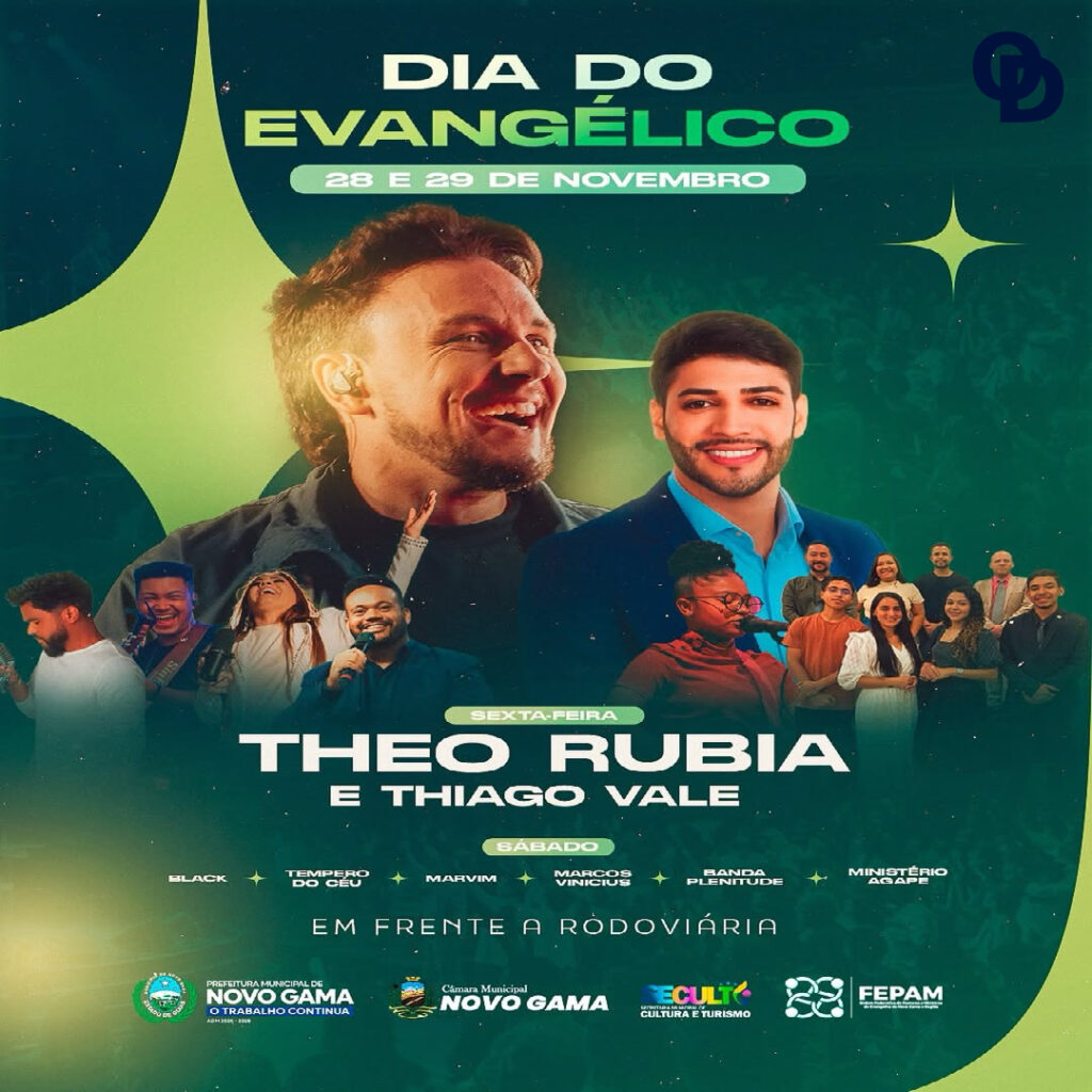 A cidade de Novo Gama se prepara para duas noites de fé, música e celebração em homenagem ao Dia do Evangélico. As atividades serão realizadas nos dias 28 e 29 de novembro, a partir das 19 horas, em frente à Rodoviária de Novo Gama, em um espaço organizado para receber moradores, famílias e visitantes. Toda a programação é gratuita.