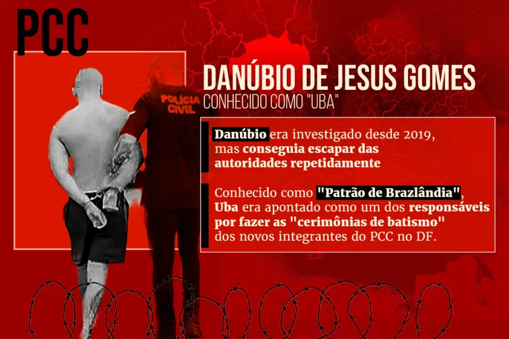 Um foragido da Justiça e integrante do PCC foi preso na casa do pai, em Brazlândia (DF), em março deste ano. Danúbio de Jesus Gomes, conhecido como “Uba”, é apontado pela polícia como um dos principais traficantes da região.