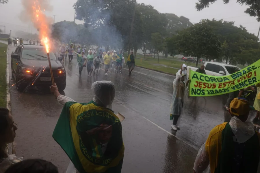 Durante o temporal em Brasília, neste domingo (25/1), um raio caiu em guindaste na Praça do Cruzeiro. A corrente elétrica desceu pelo equipamento e atingiu pessoas que participavam do ato final da “Caminhada pela Liberdade”, liderada pelo deputado federal Nikolas Ferreira (PL-MG).