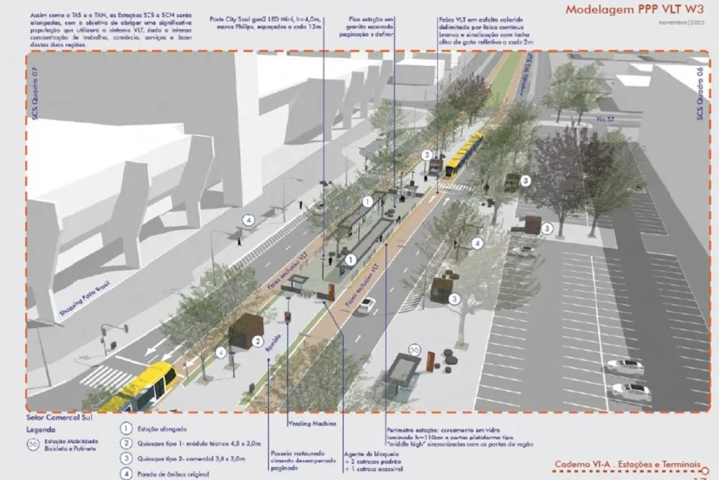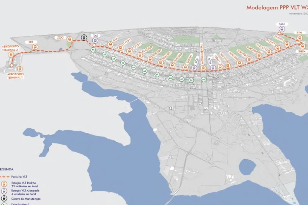 O novo projeto do VLT de ligação entre a Avenida W3 e o Aeroporto Internacional de Brasília está em análise no Tribunal de Contas do DF