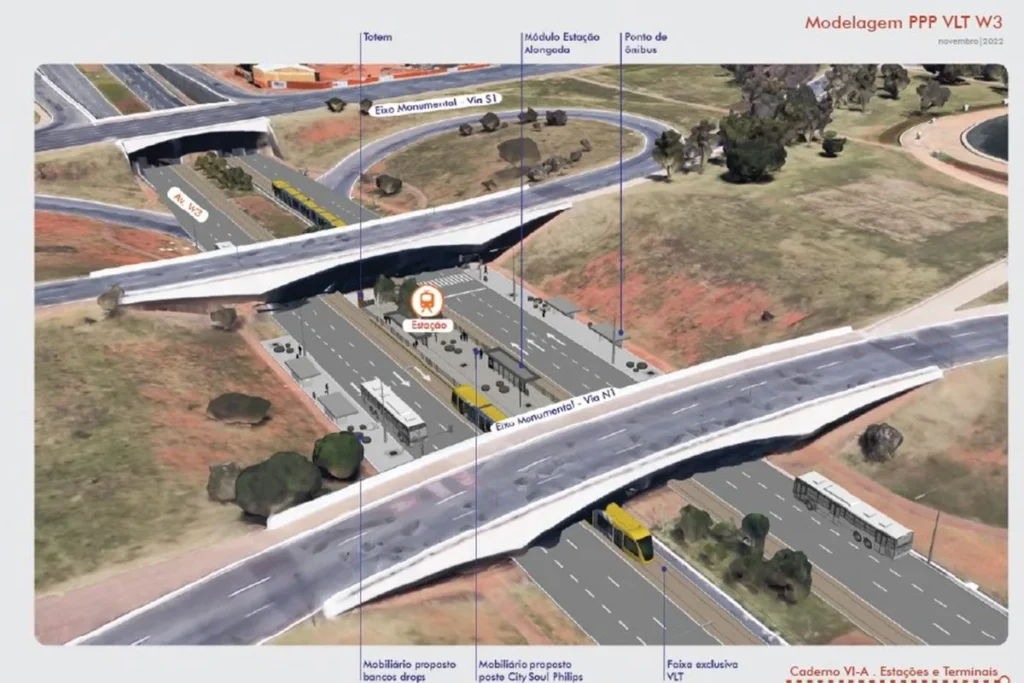 O GDF refez o projeto do VLT de ligação entre a W3 e o Aeroporto Internacional de Brasília. O Instituto do Patrimônio Histórico e Artístico Nacional (Iphan) barrou a versão original, porque o traçado previa uma rede de fiação de energia aérea e isso feriria o tombamento da capital brasileira. O Palácio do Buriti reformulou a proposta com os fios sob o solo.