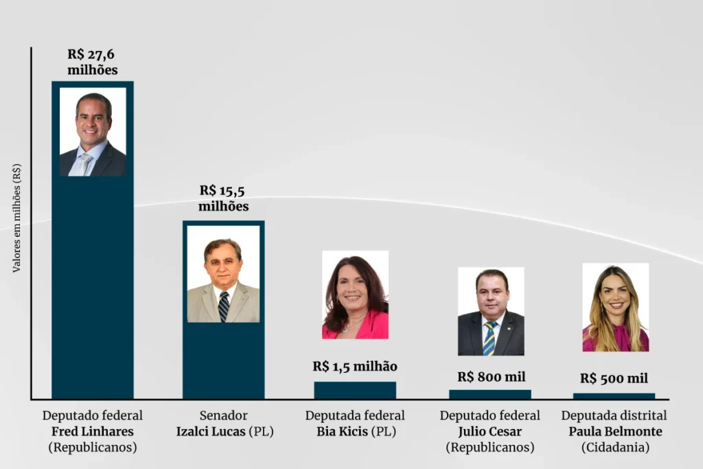 • senador Izalci Lucas (PL): R$ 15,5 milhões;