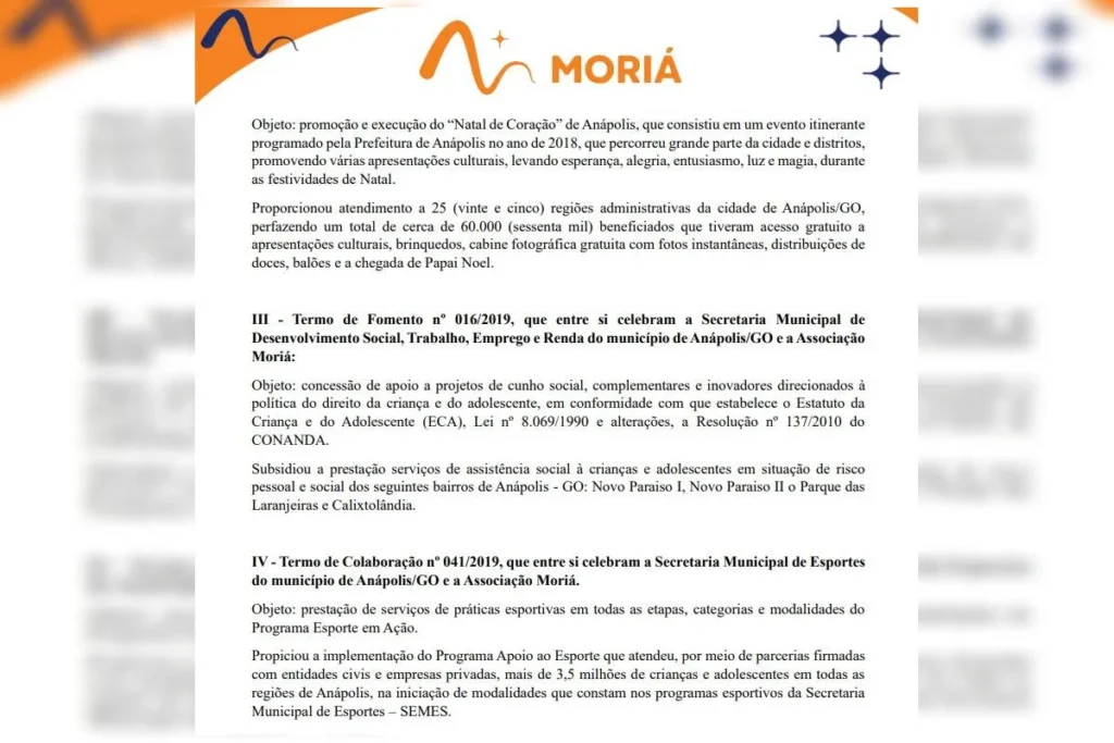 Em relatório entregue ao Supremo Tribunal Federal (STF), a Controladoria-Geral da União (CGU) apontou que a Associação Moriá “não detém capacidade técnica e operacional necessárias para a execução do volume de recursos federais que recebeu”.