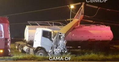 LER MAISUm caminhão-tanque de transporte de combustível derrubou um poste de alta tensão na DF-290, sentido Vila DVO, na altura do Parque